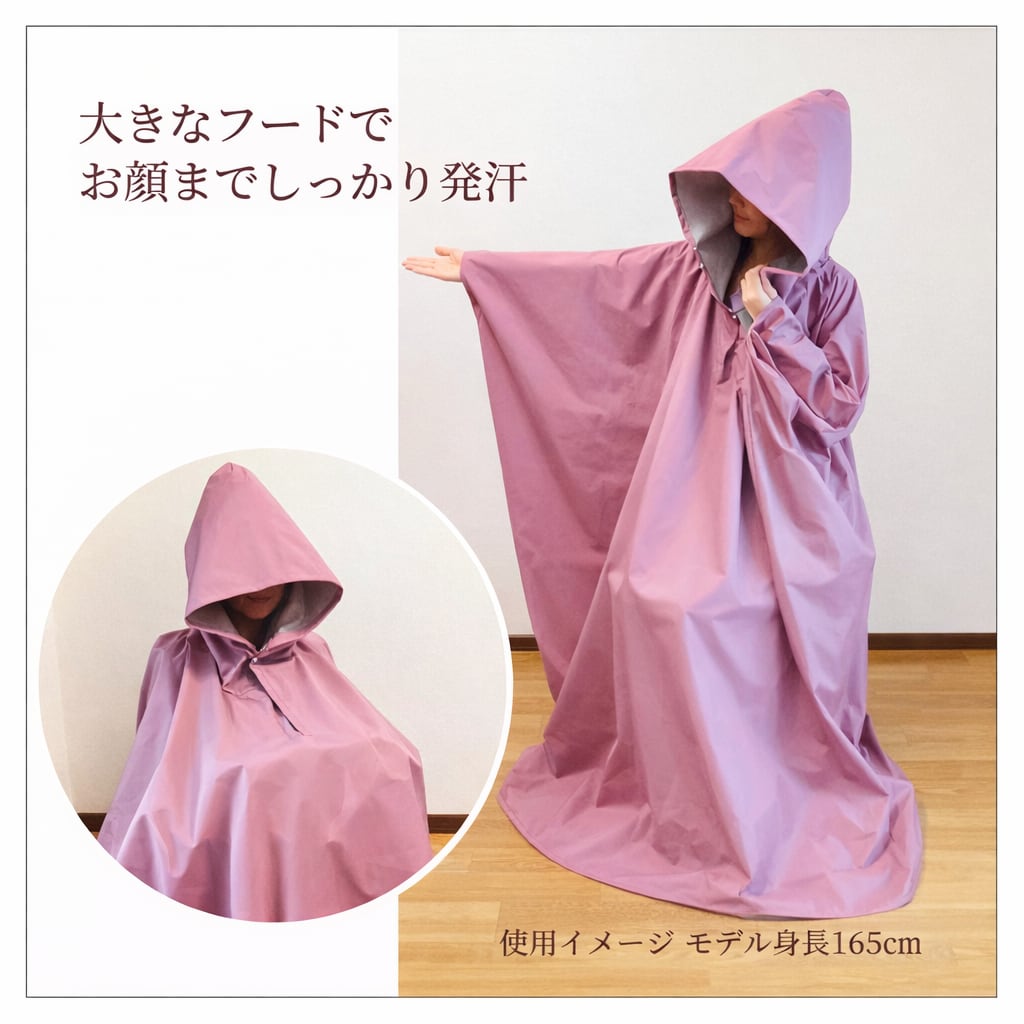 フード付きのよもぎ蒸しマント。